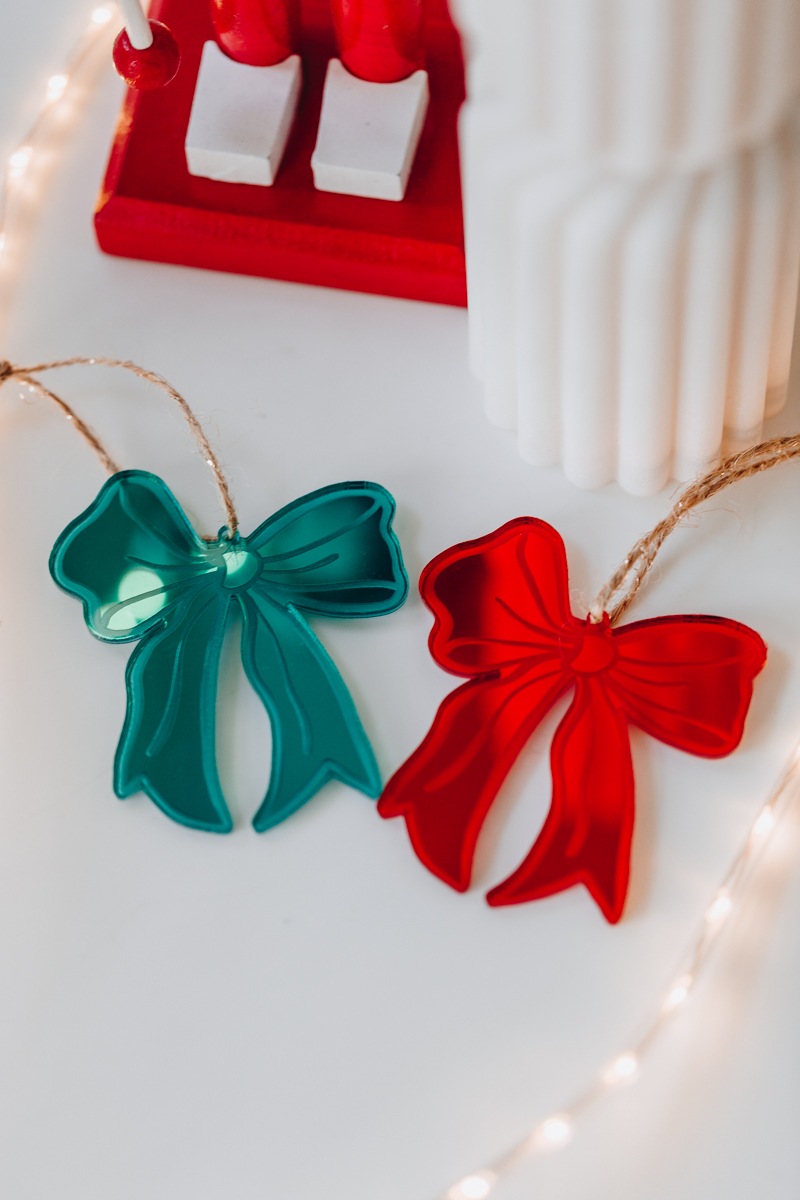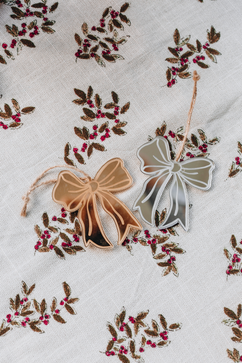 Ces suspensions en plexi miroir apportent une brillance subtile à votre intérieur tout en incarnant l’esprit de Noël avec des nœuds élégants. Un duo parfait pour décorer votre sapin ou tout autre coin de votre maison.