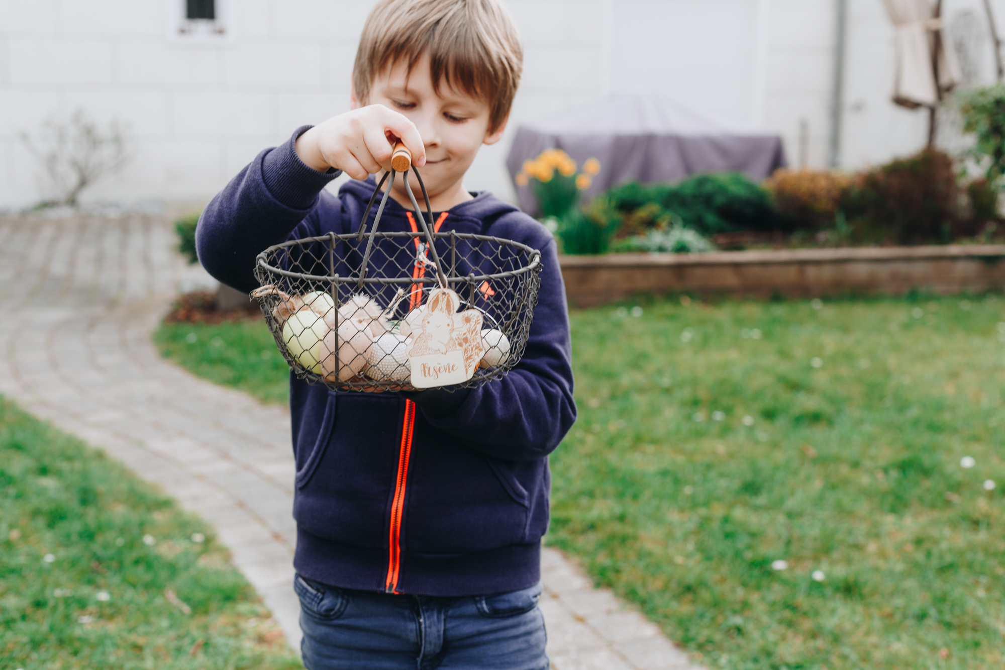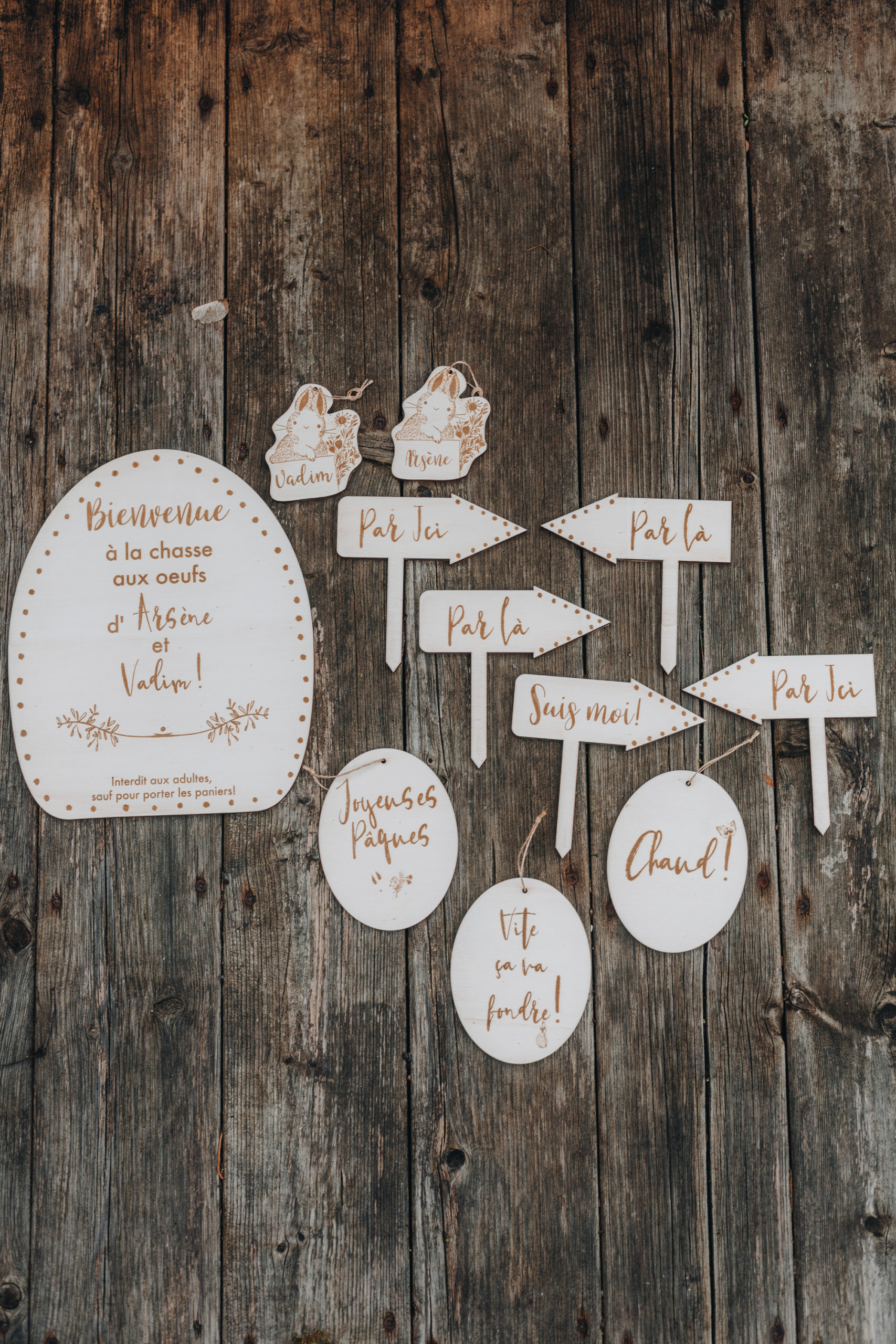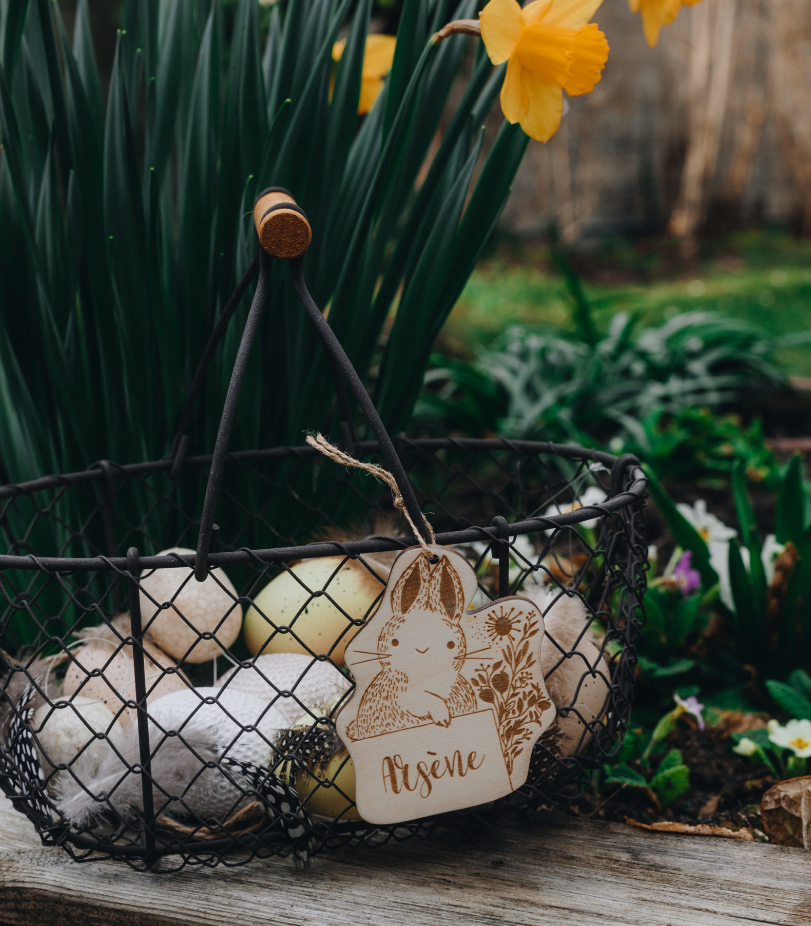 Voici l’étiquette que vous pourrez accrocher au panier ou au sac qui recueillera le butin de la chasse aux oeufs de vos Minis. Vous pouvez les personnaliser en précisant le ou les prénom(s) à graver en note de commande, juste avant le paiement.