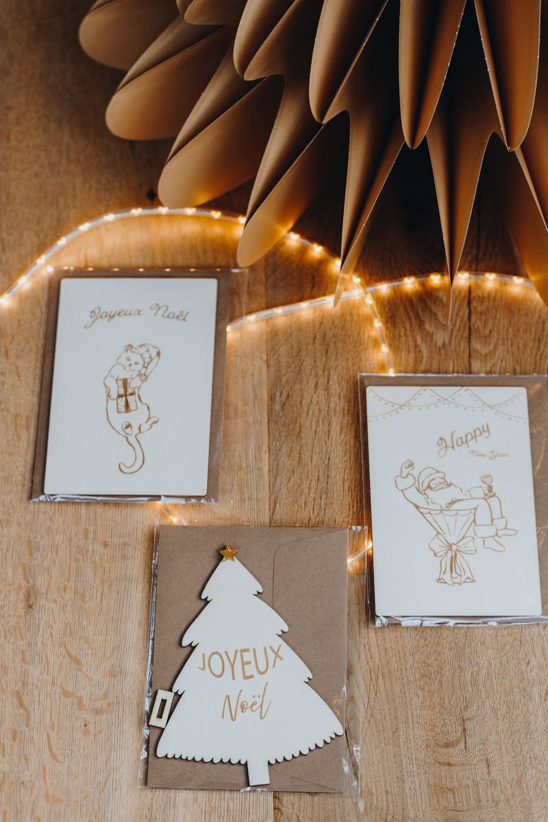 Offrez vos vœux autrement avec ces cartes de vœux en bois gravé, un cadeau à la fois attentionné, durable et intemporel qui plaira à coup sûr !