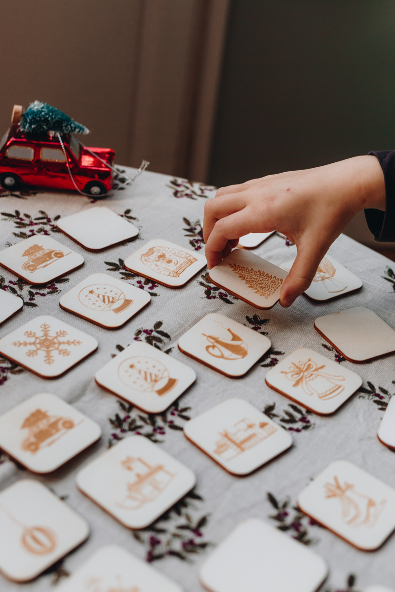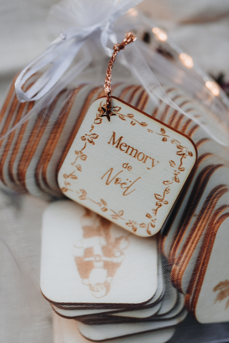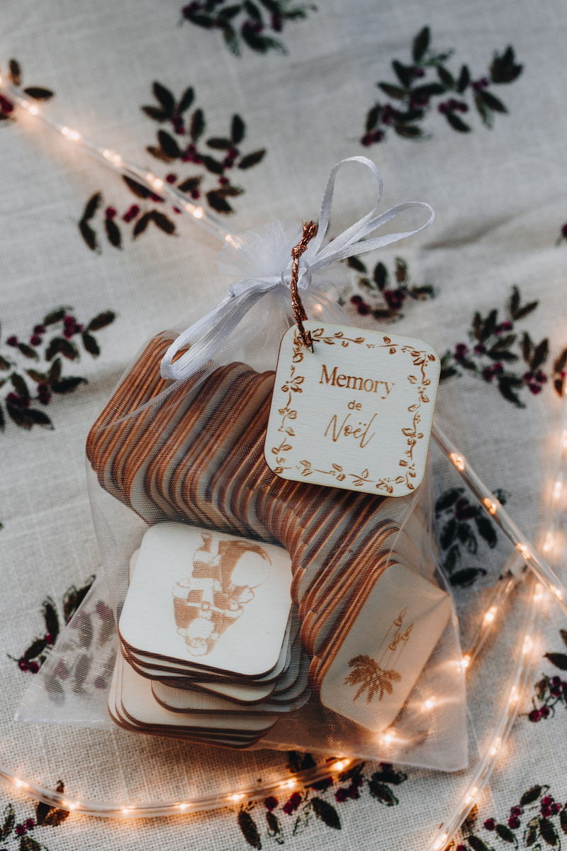Le memory est livré dans une pochette en organza blanche et transparente, pratique pour ranger les pièces et l’emporter partout pendant les vacances de Noël.